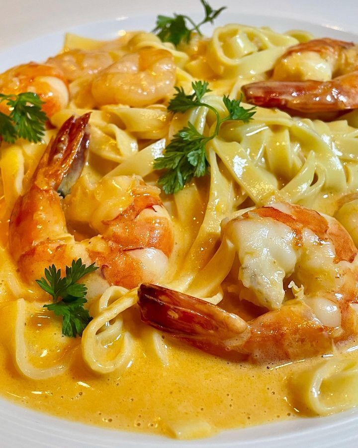 濃厚なエビのソースのタリアテッレ